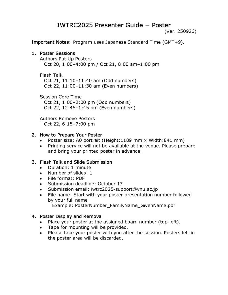 13:00-14:00 | Poster Session Core Time (Odd numbers) |